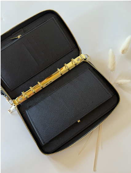 Portafoglio in versione A6 con tasche per le carte e un portamonete integrato.